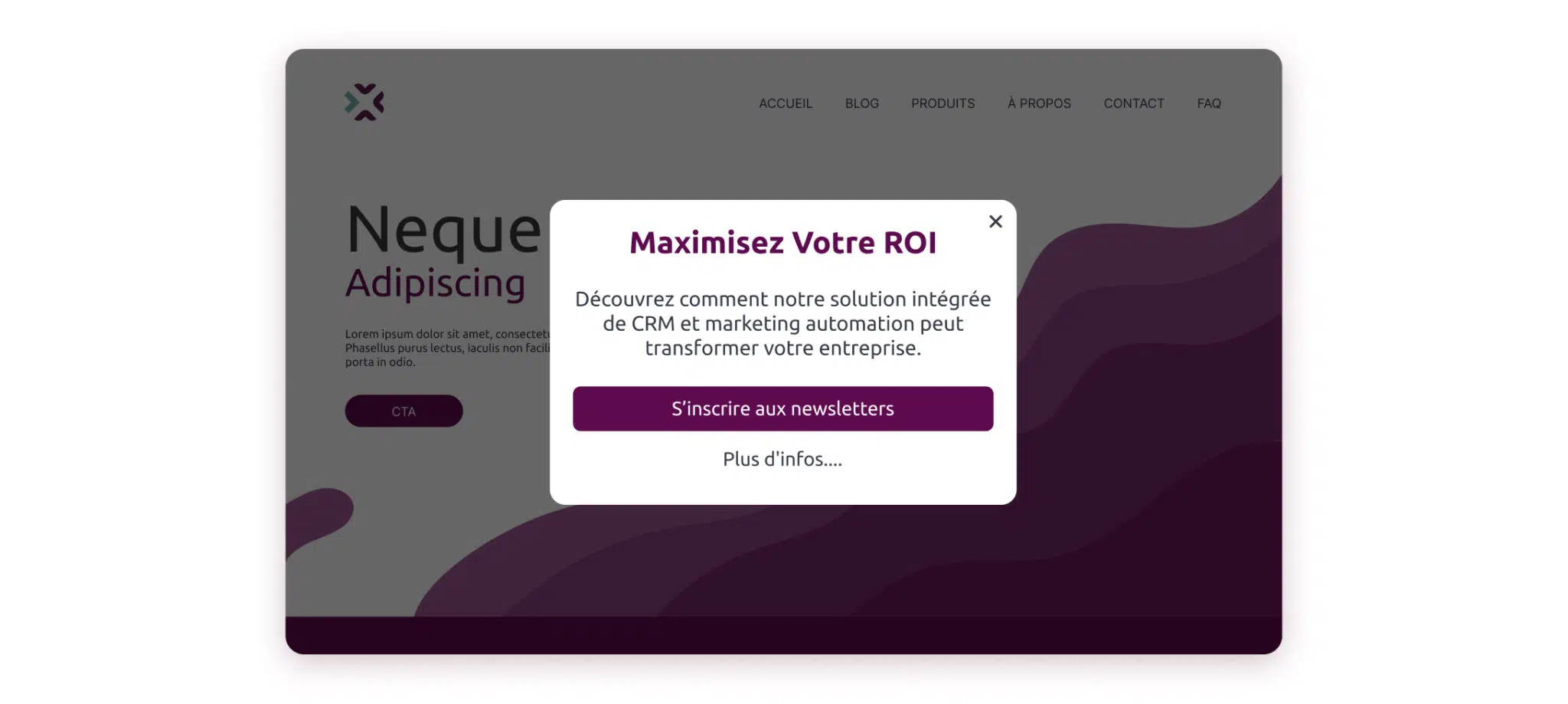 Il est possible de déclencher une pop-in lorsqu’un utilisateur a l'intention de quitter votre page. Une sorte de dernier appel. 🥲 Il est possible de programmer ce type de pop-in grâce à des critères prédéfinis au sein de votre logiciel.