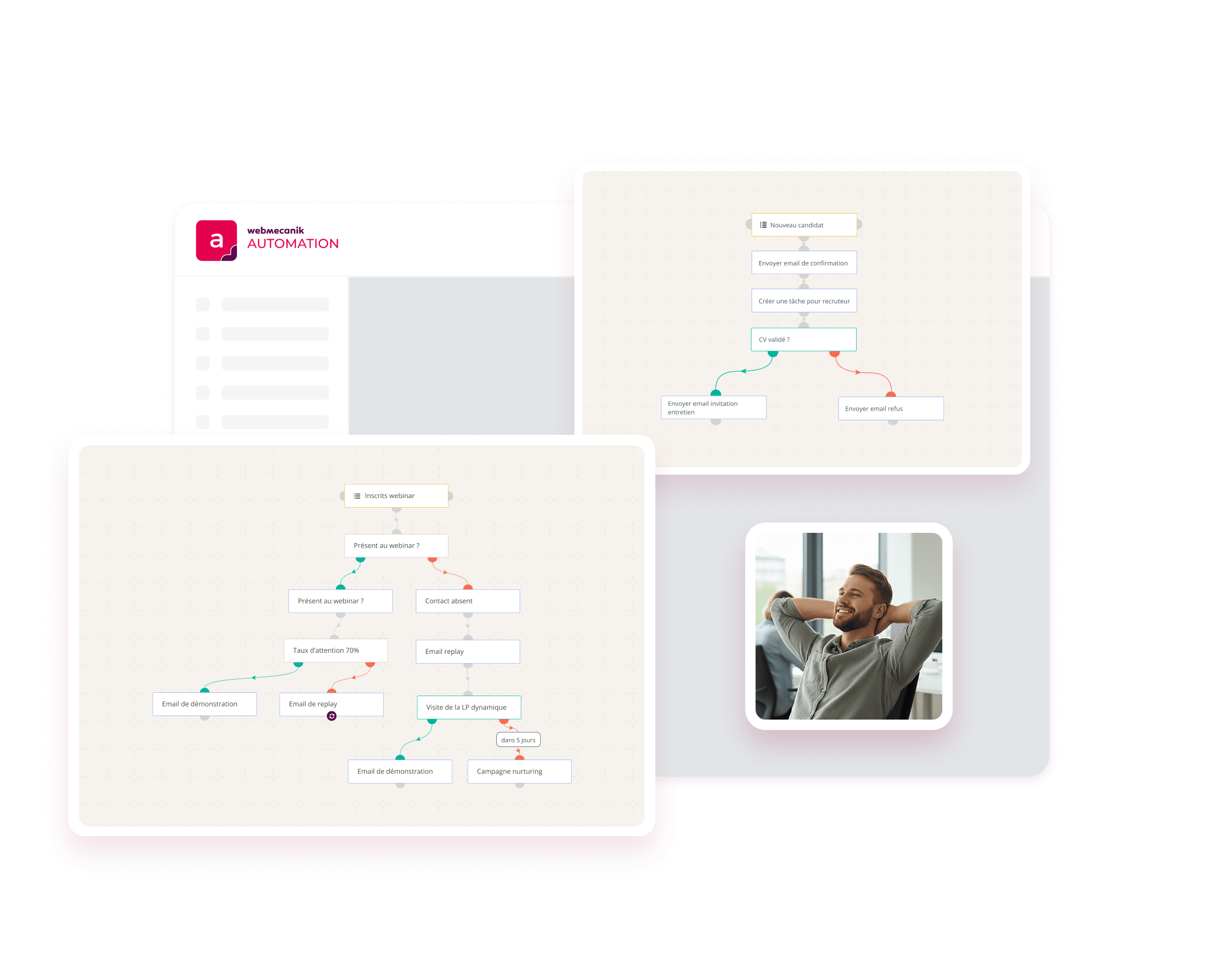 En optant pour Webmecanik Automation, vous générez plus de leads qualifiés, nourrissez vos prospects et augmentez vos conversions, tout en gagnant du temps grâce à des campagnes intelligentes et automatisées.