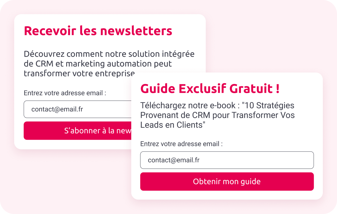 L’email marketing ou campagne emailing, a pour objectif d’accompagner la prospection, la génération de leads et l’activation commerciale. Il consiste à envoyer des messages promotionnels ou ciblés à votre base de données email, qu’il s’agisse de prospects chauds, de leads segmentés ou de contacts issus de vos formulaires.