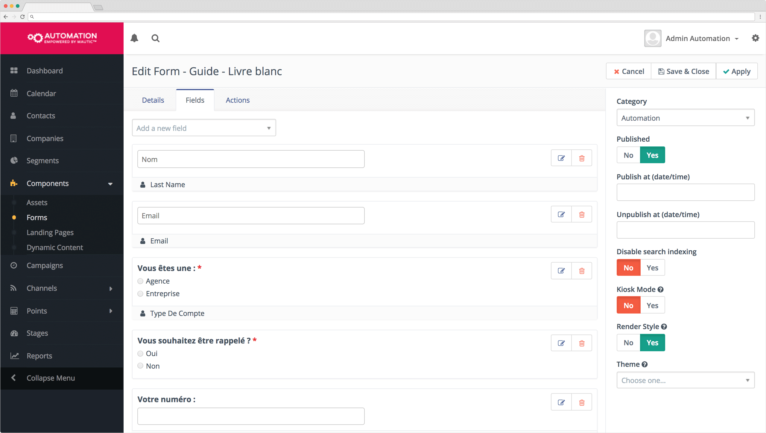 Par la création de formulaires personnalisés en quelques clics, vous convertissez des visiteurs anonymes en prospects directement enregistrés et segmentés dans votre base de données.
