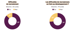 Ce constat dressé depuis de longues années ne fait que perdurer et s’accélère puisque 87 % des éditeurs de logiciels déclarent faire face à des difficultés de recrutement, soit une hausse de 3 points par rapport à 2017. L’ensemble de la profession subit aujourd’hui la pénurie de talents et ce, sur quasiment tous les types de profils ! Ces difficultés constituent un frein au développement pour 75% des éditeurs de logiciels.