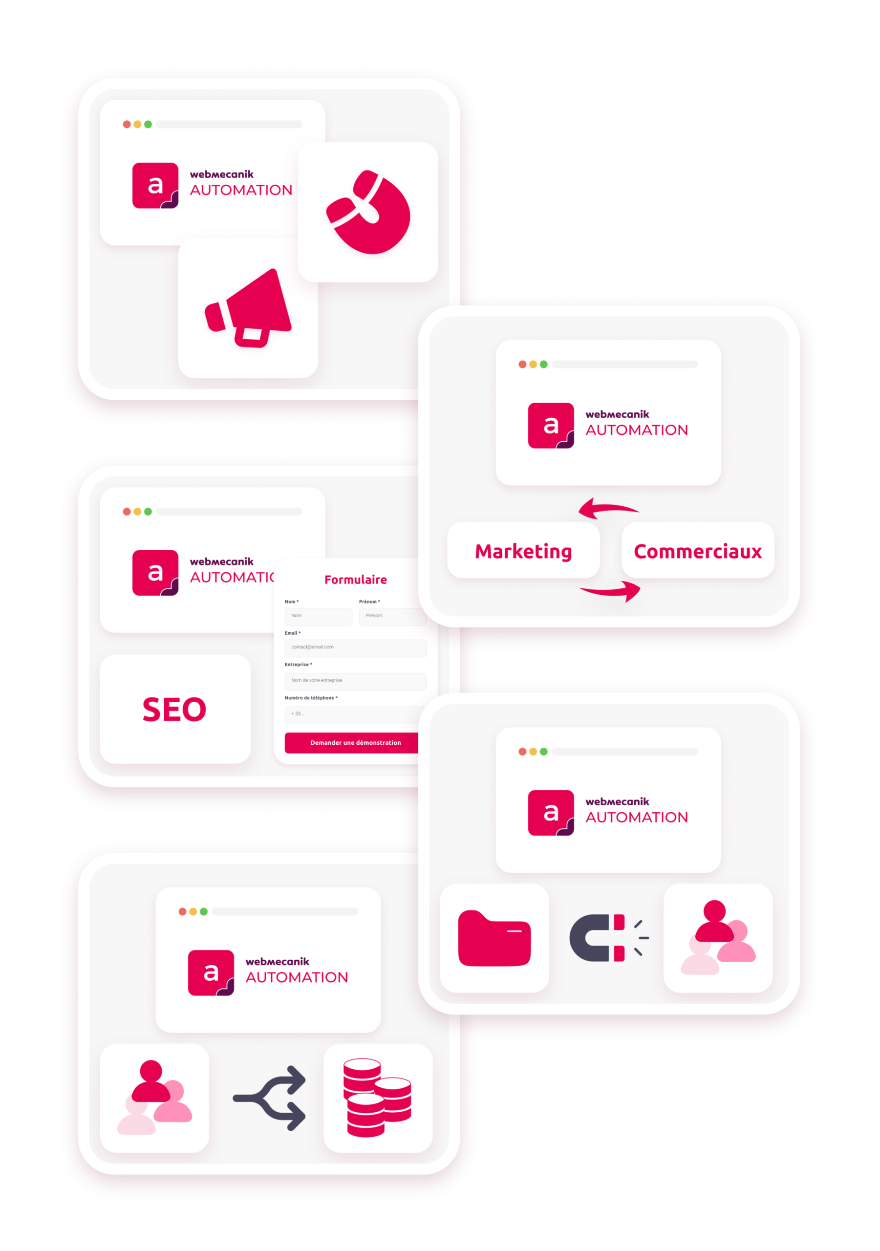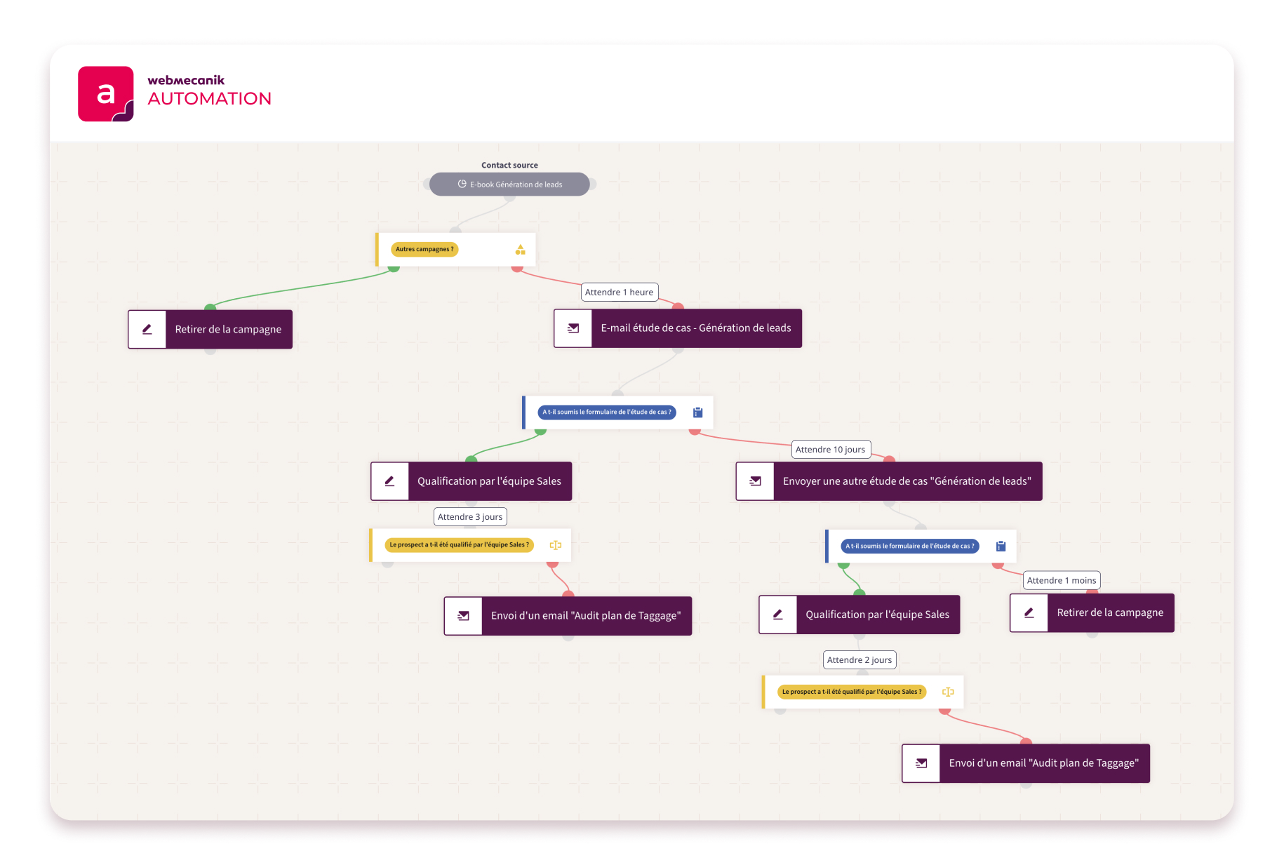 En adoptant Webmecanik Automation, l’agence a pu structurer et automatiser ses actions marketing autour de plusieurs leviers clés pour maximiser l’efficacité de son acquisition et la conversion de ses leads :