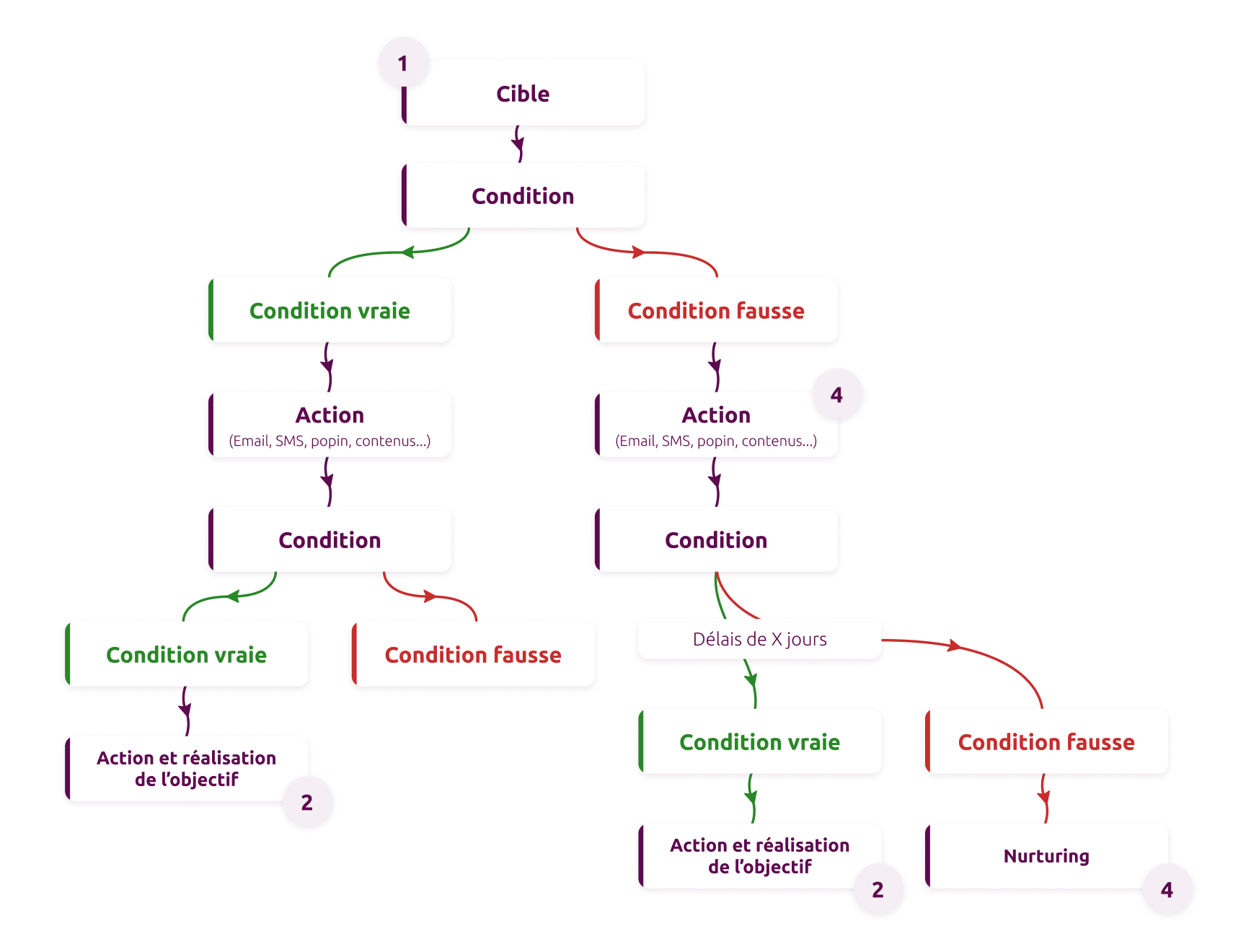 Une méthodologie claire et concise sur la construction d’une campagne de marketing automation en 4 étapes? En prime, 3 scénarios pour débuter le marketing automation et implémentables pour votre propre stratégie marketing :