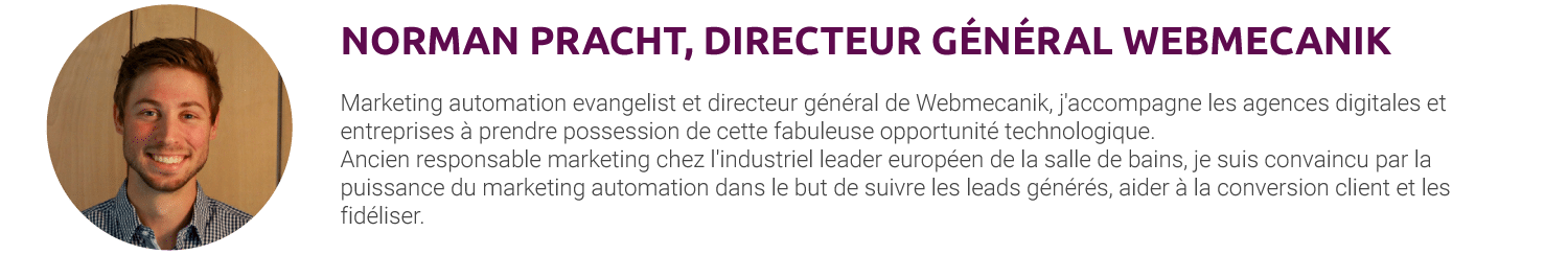 Marketing automation evangelist et directeur général de Webmecanik, j’accompagne les agences digitales et entreprises à prendre possession de cette fabuleuse opportunité technologique.