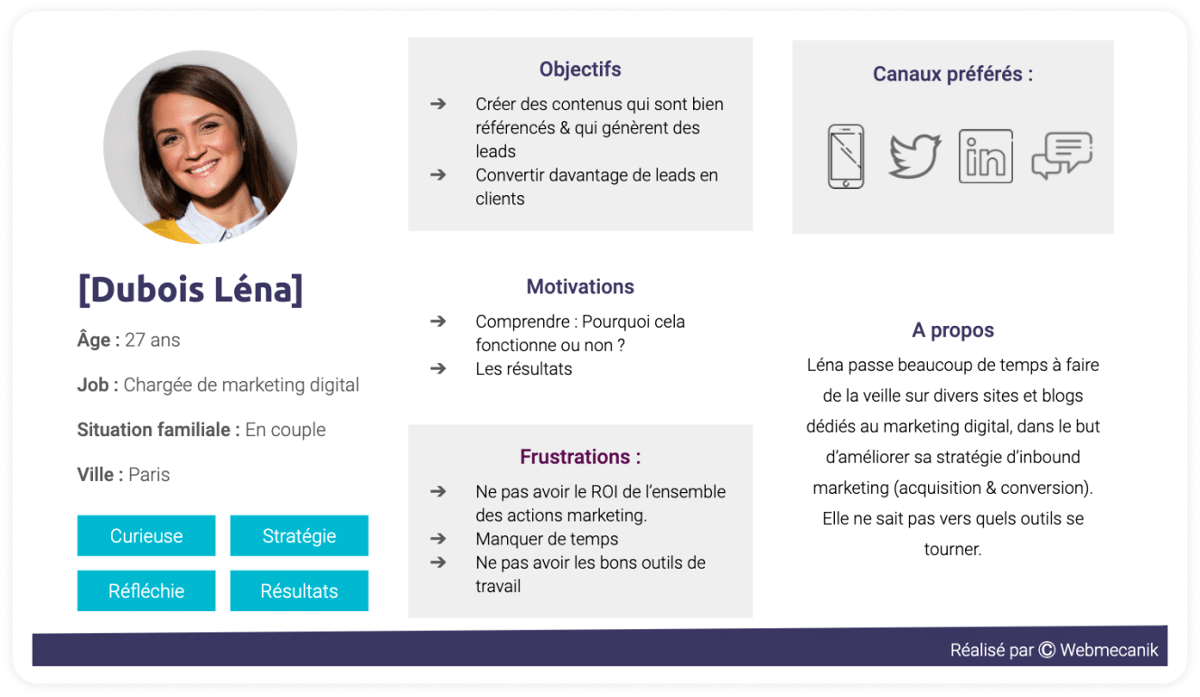 La définition de vos personas (prospects et clients) est l’étape cruciale pour déterminer le profil de votre audience et en quoi votre produit ou service répond à ses attentes : que recherchent-ils ? Que veulent-ils ? Comment pouvons-nous les aider ?