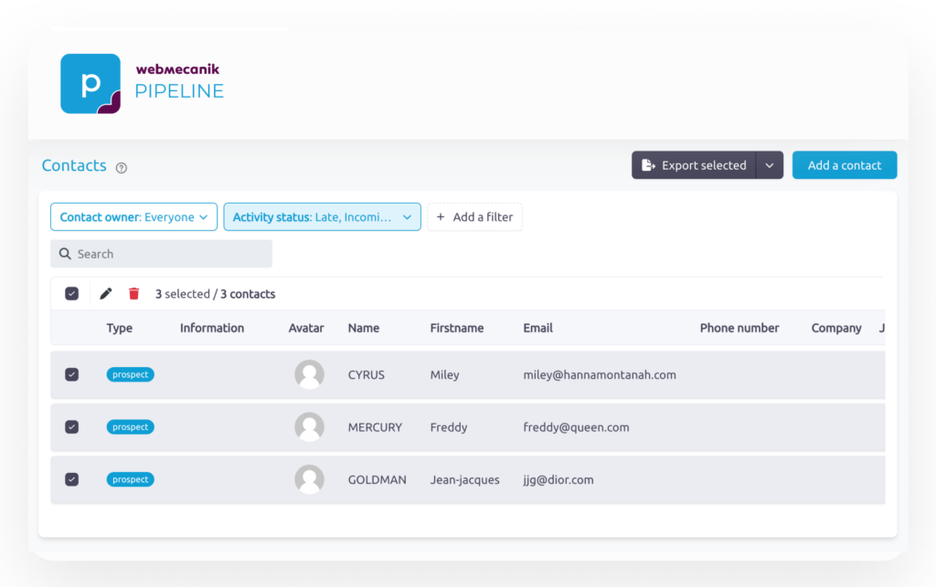 Vous souhaitez filtrer les listes de vos contacts et entreprises ? C’est aujourd’hui possible pour tous les utilisateurs de Webmecanik Pipeline. Créez des listes de prospection en filtrant vos données sur les informations d’activités et d’opportunités de vos contacts et entreprises.
