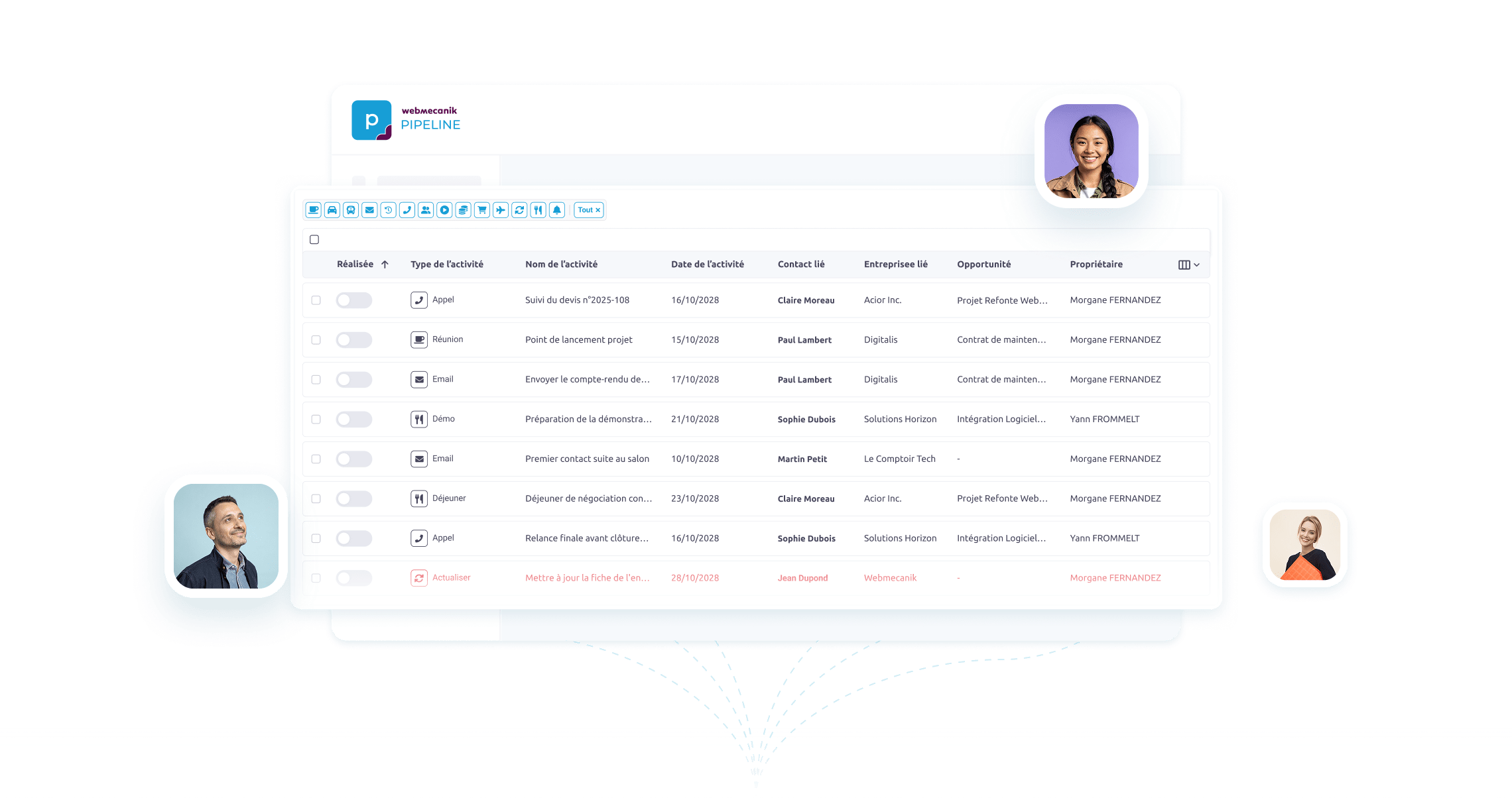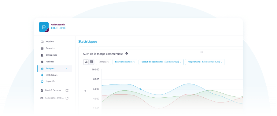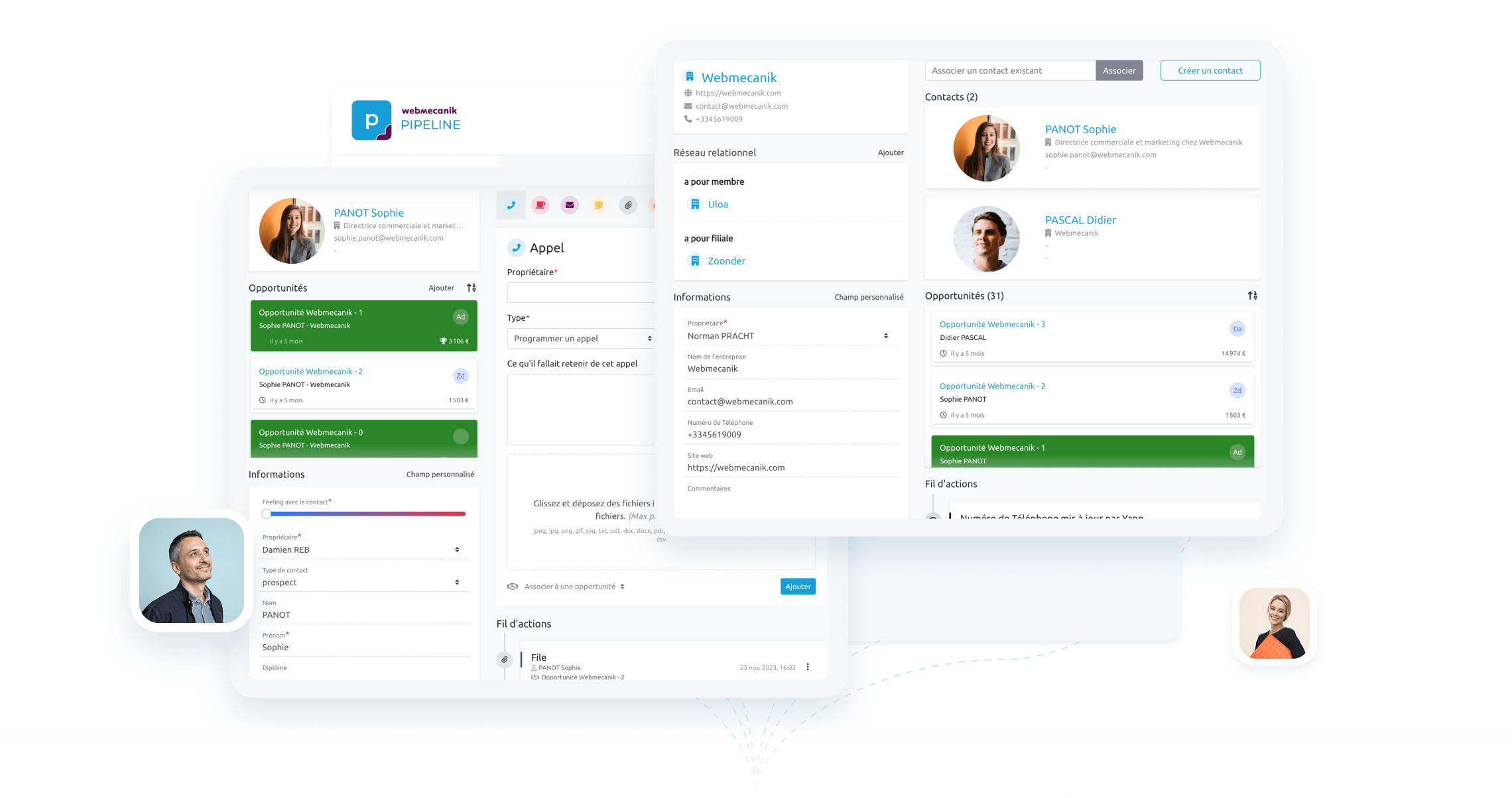 Avec Webmecanik Pipeline, centralisez vos données, suivez toutes vos actions commerciales et ne laissez plus aucune vente vous échapper. Tout en offrant à votre équipe commerciale plus de performance et de sérénité !