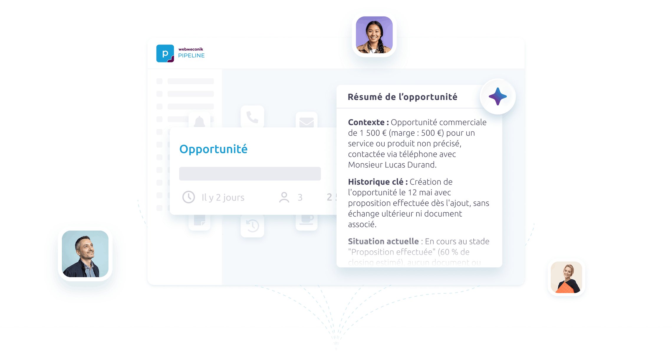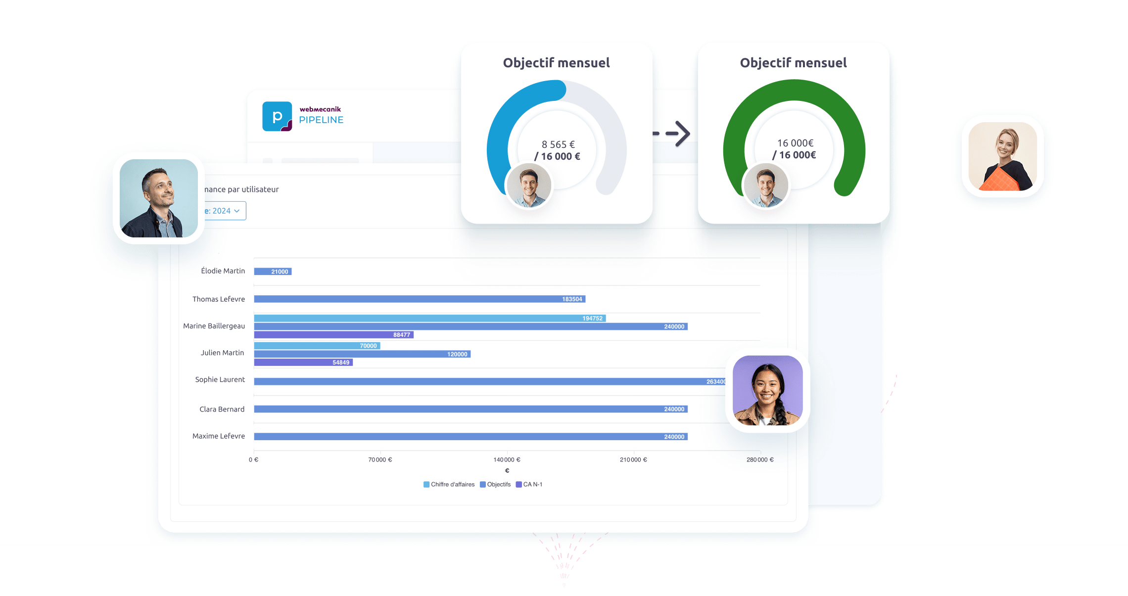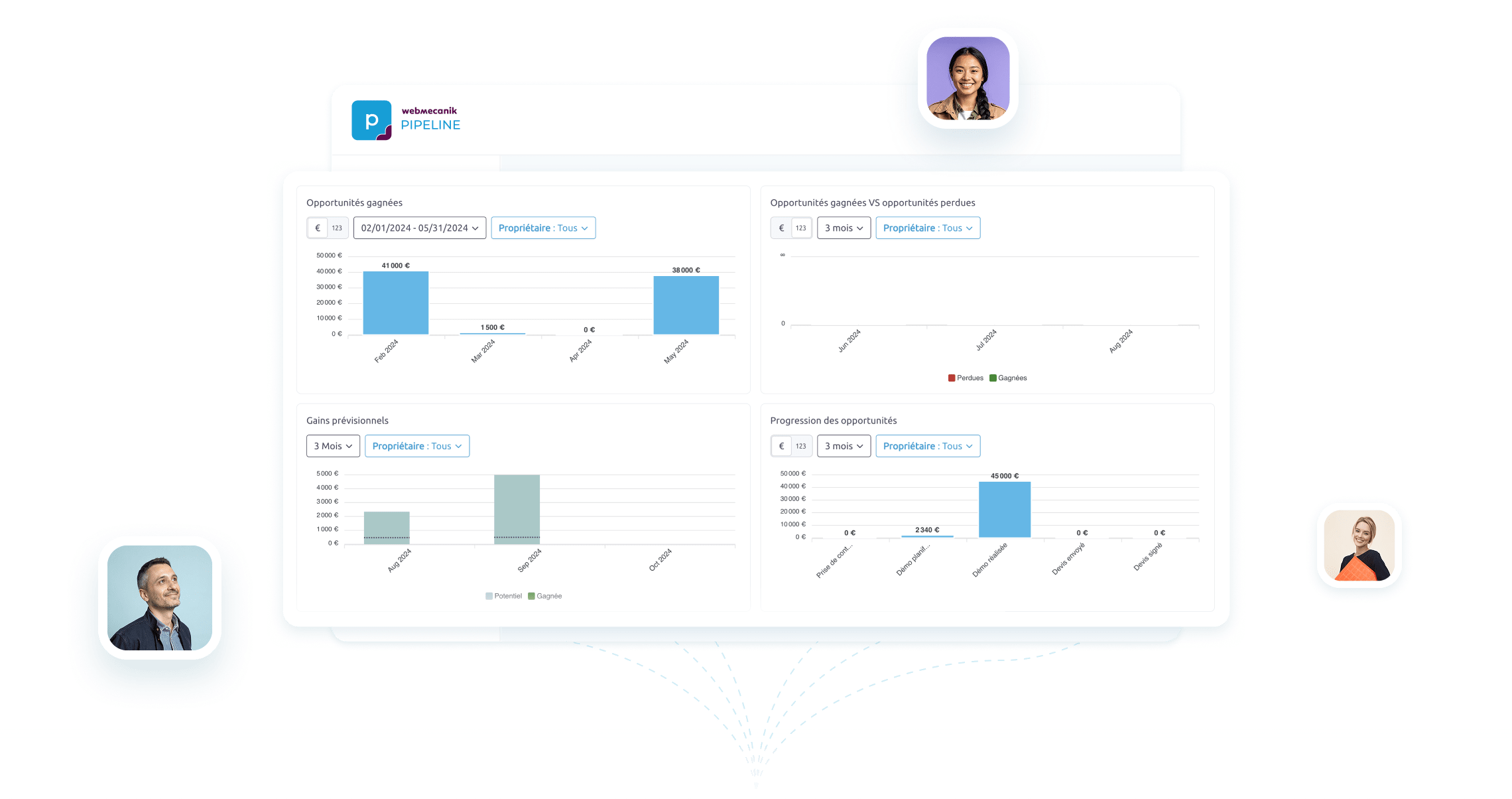 Avec Webmecanik Pipeline, centralisez vos données, suivez toutes vos actions commerciales et ne laissez plus aucune vente vous échapper. Tout en offrant à votre équipe commerciale plus de performance et de sérénité !