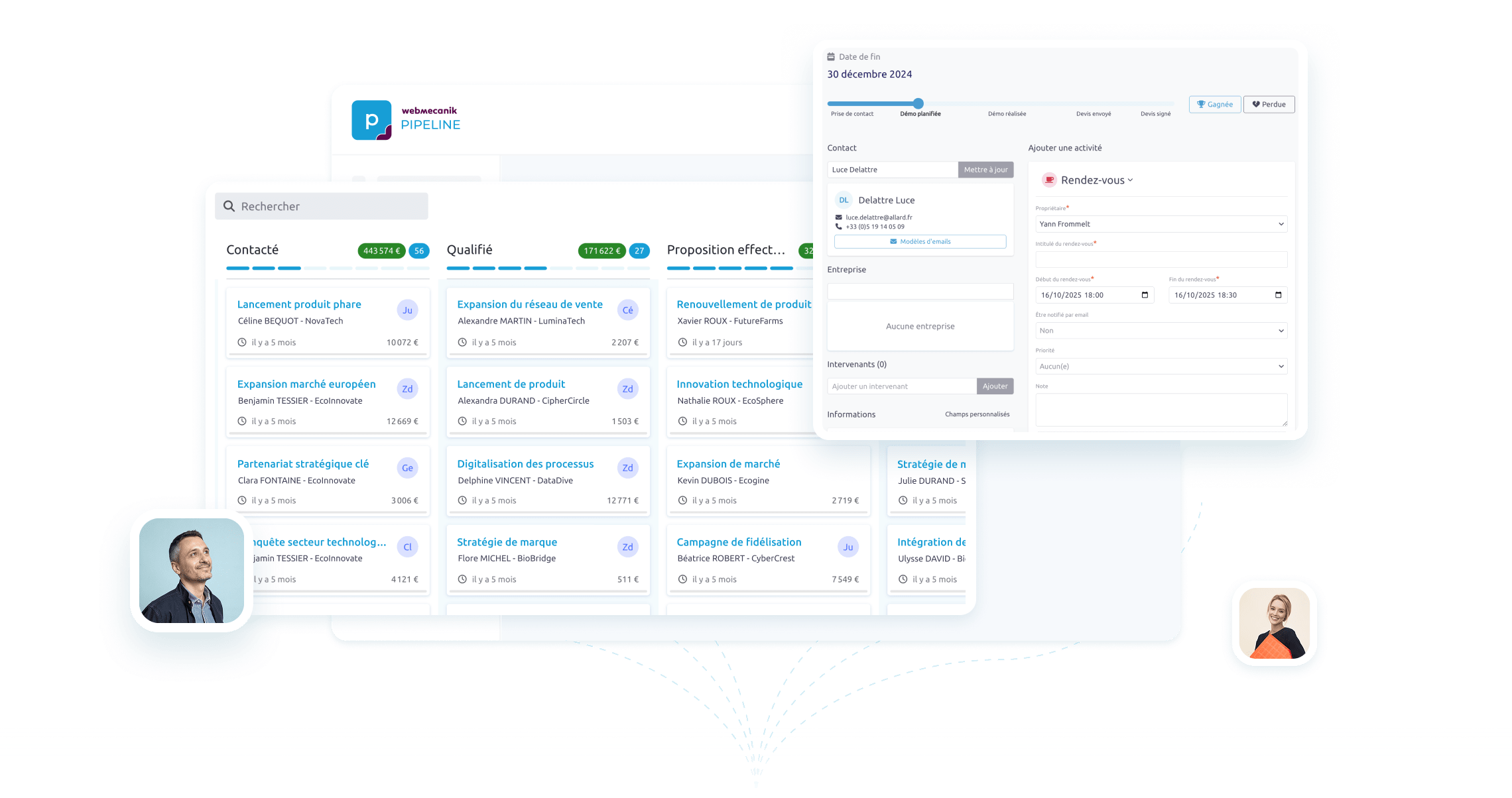 Le CRM français qui simplifie et accélère votre processus de vente, de la prospection à la signature.